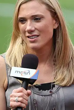 Amber Theoharis (born September 13, 1978) is an American journalist, sports anchor and reporter, documentary film producer and tech executive. She is best known as a former sports anchor and reporter for the Baltimore Orioles and Baltimore Ravens, and is the former co-host for NFL Network on NFL Total Access.[1]She currently works for the Las Vegas Raiders as the sports anchor and host of various Raiders programming.[2]