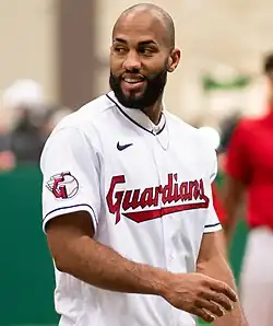 On January 7, 2021, the Mets traded Rosario, Andrés Giménez, Josh Wolf, and Isaiah Greene to the Cleveland Indians for Francisco Lindor and Carlos Carrasco.[22][23] In March 2021, the Indians began transitioning Rosario into a role as an outfielder with the help of coach Kyle Hudson, implicitly giving the starting shortstop job to Giménez.[24][25] During Rosario's first three innings in the outfield during a spring training game, he committed three errors which led to eight unearned runs being scored.[24] Rosario's only prior experience in the outfield was three innings spent in left field with the Mets in 2019.[25] Giménez was demoted to the minors on May 18.[26] Around that same time, Rosario became the team's regular starting shortstop.[27] On August 31 against the Kansas City Royals, Rosario went 5-for-5 with a career-high 5 RBIs. It included two home runs, one being the first inside-the-park home run in his career.[28][29] Rosario finished the 2021 season batting .282/.321/.409 with 11 home runs, 57 RBIs, 77 runs and 13 stolen bases in 141 games.[17]