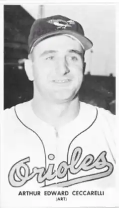 Arthur Edward Ceccarelli (April 2, 1930 – July 11, 2012) was an American pitcher in Major League Baseball who played for the Kansas City Athletics, Baltimore Orioles, and Chicago Cubs in parts of five seasons spanning 1955–1960. Listed at 6' 0", 190 lb., he batted right-handed and threw left-handed.[1]