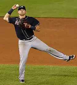 In 2020, he batted .239/.301/.415 with 8 home runs and 27 RBIs in 206 plate appearances. On defense, he played primarily third base (46 games), with four games each at first base and in left field.[37] His six errors were the third-most among NL third basemen.[37] He made his postseason debut, batting .178 with one home run in 12 games as Atlanta lost in the National League Championship Series.[38]