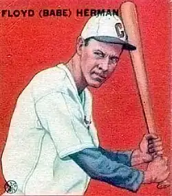 Floyd Caves "Babe" Herman (June 26, 1903 – November 27, 1987) was an American professional baseball player and scout. He played in Major League Baseball (MLB) as a right fielder between 1926 and 1945, most prominently as a member of the Brooklyn Dodgers who were known as the Robins at that time. After his most productive years with the Robins, he ended his playing career playing for the Cincinnati Reds, Chicago Cubs, Pittsburgh Pirates and the Detroit Tigers.