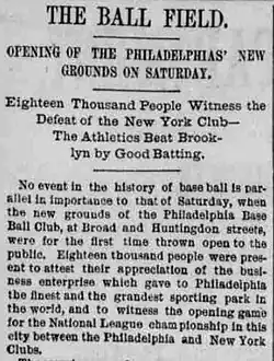 - ^ a b "The new ball park". The Philadelphia Times. May 1, 1887. p. 1 – via Newspapers.com.