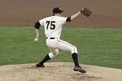 In mid-2004, Zito added a two-seam fastball and a cutter–slider hybrid to his arsenal. In the 2009 season, this cutter-slider became a prominent part of his repertoire, being used more frequently than his changeup.[109] Zito's diminished velocity at the start of the 2007 season (his fastball velocity slowed to 83–85 miles per hour (134–137 km/h)) and loss of command were the key mechanical reasons for his struggles that year, as he more often got behind in the count and had to rely more on his fastball.[111] During the 2009 season, Zito made changes to his delivery, lowering his arm slot from an over the top angle to a three-quarters delivery. This change helped his fastball velocity go back up to the 86–89 miles per hour (138–143 km/h) range as well as sharpening the break of his curveball. However, in 2011, he was once again in the 84–87 miles per hour (135–140 km/h) range with his fastball. In 2012, Zito relied mostly on his two-seam fastball and cutter and reduced his reliance on the four-seamer,[109] which was the slowest four-seamer in MLB among starting pitchers that year, at 84.6 miles per hour (136.2 km/h).[112]