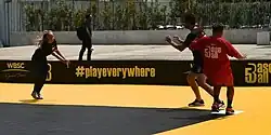 Before B5, the WBSC had tried promoting several other baseball variants at a youth level, such as tee-ball, without significant success.[27] B5 was invented in part to increase the odds that a sport similar to baseball and softball will be played in the Olympics,[28] with B5 meant to contribute to an ultimate goal of having a billion fans in the baseball-softball community by 2030[29][30][31] and helping to demonstrate the global reach of the games.[32] It also intended to create a game that would be more accessible and cheap,[10] as the only equipment used in B5 is the rubber ball,[12][33] and the field is much smaller than a baseball diamond or softball field,[34] with the game being playable indoors.[35] In this respect, as well as the fact that there are fewer players required to play a game,[36] B5 is meant to imitate smaller, more urban variants of other major sports, such as 3x3 basketball, futsal, and rugby sevens.[37][38]