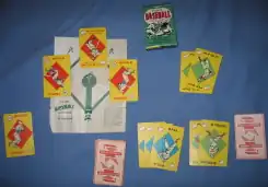 In some editions from the 1960s, strikes and outs are color-coded orange, balls green, and all cards that advance a runner, blue, while in late-1950s editions, strikes and outs are green, balls blue, and cards advancing a runner, red. The cards are illustrated with line drawings of the action represented by the card; in the 1960s, a New York Mets edition included Mr. Met as the principal figure in the illustrations, and a Mets logo as the back design.