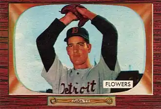 Flowers, a knuckleball pitcher, debuted in the major leagues with the Boston Red Sox, appearing in 33 games pitched, one in 1951 and 32 during the full season of 1953. Then, during 1955 and 1956, he worked in 43 total games for three MLB teams: the Detroit Tigers (1955), St. Louis Cardinals (1955–1956) and Philadelphia Phillies (1956). His most productive season came for the 1953 Red Sox, when he posted career-bests in earned run average (ERA) (3.86), strikeouts (36), and innings pitched (871⁄3), in 32 games, including six starts, and one shutout, while recording all three of his career saves. His lone big-league shutout and complete game happened on August 5, when he blanked the St. Louis Browns, 5–0, at Fenway Park, allowing eight hits and two bases on balls.[2] The losing pitcher in that contest was Don Larsen, later to be immortalized as a New York Yankee by his perfect game during the 1956 World Series.