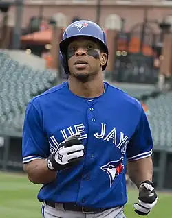 On July 31, 2015, Revere was traded to the Toronto Blue Jays for Alberto Tirado and Jimmy Cordero.[43] Revere struggled early in his tenure with the Blue Jays, going hitless in his first 13 at-bats.[44] He would return to form for the remainder of August, making several highlight-reel catches in left field and extending a hit streak to 9 games on August 29. During those 9 games, Revere batted .514.[45] He played in 56 games for the Blue Jays in the 2015 regular season, and batted .319 with 1 home run, 19 RBI, and 7 stolen bases.[46] He played 152 total games in 2015 with a .306 batting average, 2 home runs, 31 stolen bases, and 45 RBI.[46]