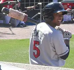 After his first-round selection,[3] the Twins assigned Revere to the Gulf Coast League Twins, with whom he posted a .325 batting average (BA) in his first season of professional ball, and was named a 2007 Gulf Coast League Postseason All-Star.[1] The following season with the Beloit Snappers of the Single-A Midwest League, Revere's batting average increased to .379 with 44 stolen bases and ten triples. He won several awards for his performance, including a Midwest League All-Star selection, Mid-season MVP, Postseason All-Star, Most Valuable Player, Prospect of the Year, and the Sherry Robertson Award as Twins' minor league player of the year.[1] Baseball America placed him on their 2008 High-A All-Star team and called him the Twins' second best prospect, behind Aaron Hicks.[4]