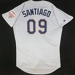 From 1991 to 1994, Santiago wore a jersey with the uniform number 09, making him one of the only major professional sports players to have ever worn a jersey with a leading zero as part of his uniform number.[26]