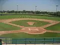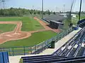 Bernie Arbour Stadium dimensions are 300 feet down the left field line, 325 down right field, 365 to left-center, 405 to straight-away center and 365 to the power alley in right-center. The main grandstand accommodates upwards of 300 spectators and another 1,000+ spectators can be seated in the first and third base bleachers. The Press Box seats up to 10 members of the media and is capable of supporting radio and television broadcasts.[1]
