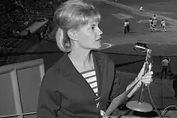 Caywood had previously worked as a weather reporter on a Chicago television station. On September 16, 1964, she was hired by Athletics' owner Charles Finley to provide a female perspective on the games.[2] Caywood provided color commentary while Monte Moore and George Bryson provided the play-by-play.[2] Baseball author Bill James wrote of Caywood in his 1986 Baseball Abstract "Don't get me wrong, I'm all for having a woman announcer but it would help if she was a baseball fan."[3] She did not return to the broadcasts in 1965.