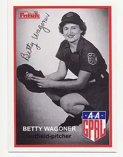 An All-Star and a member of two championship teams, Betty Wagoner played in the All-American Girls Professional Baseball League during the final seven years of its existence. For most of her career Wagoner hit for batting average, moving along baserunners as an occasional slugger and often appeared among the league's top twenty hitters. A smart and alert runner, she moved aggressively in the right situations to take the extra base. Armed with a strong, accurate throwing arm, she had good range at right field, catching almost everything that came her way and always knew what to do with the ball. Eventually, she played at center field or first base, serving also as an occasional starting pitcher. She posted an 8–20 record in 32 pitching appearances, while her .271 batting average ranks her eleventh in the AAGPBL all-time list.[1][2]
