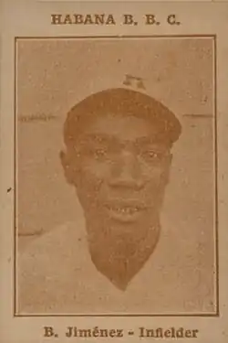 Bienvenido Jiménez (born March 22, 1890, in Cienfuegos – death date unknown) was a Cuban baseball second baseman in the Cuban League and Negro leagues. He played from 1912 to 1929 with several clubs, including Habana, the Cuban Stars (West), and the Cuban Stars (East). Jiménez was nicknamed "Hooks", "Gambeta", and "Pata Joroba". He was elected to the Cuban Baseball Hall of Fame in 1951.[3]