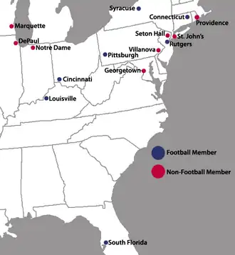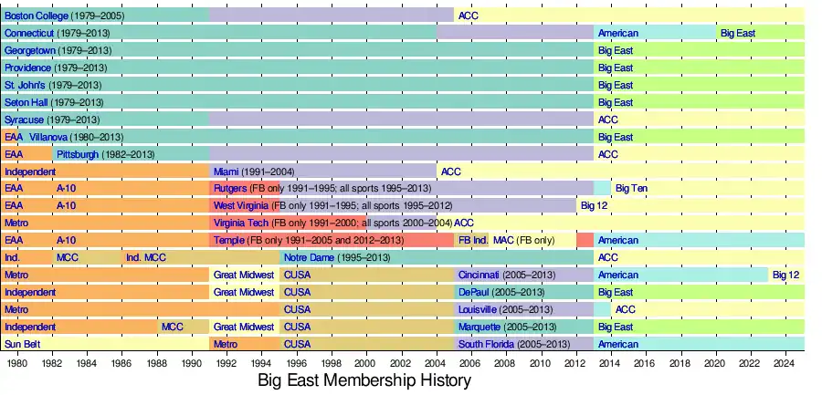 4. ^ a b "Big East Conference - BIG EAST Conference History". www.bigeast.com. Archived from the original on September 16, 2017. Retrieved May 8, 2018.