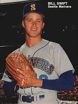 William Charles Swift (born October 27, 1961) is an American former professional baseball right-handed pitcher. Swift played in Major League Baseball (MLB) for the Seattle Mariners, San Francisco Giants, and Colorado Rockies from 1985 to 1998.[1] Known for his exceptional control and sinker, Swift achieved his greatest success with San Francisco, leading the National League in earned run average in 1992 and finishing as runner-up for the Cy Young Award in 1993.[2]