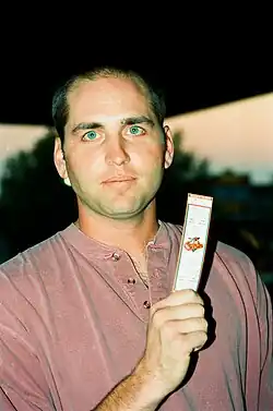 In 1989, Ripken's Fleer card showed him holding a bat with the expletive "FUCK FACE" written in plain view on the knob of the bat.[29][30] Fleer subsequently rushed to correct the error and, in their haste, released versions in which the text was scrawled over with a marker, whited out with correction fluid,[31] and also airbrushed.[32] On the final, corrected version, Fleer obscured the offensive words with a black box[33] (this was the version included in all factory sets). Both the original card and many of the corrected versions have become collector's items as a result. There are at least ten different variations of this card.[34] Once news got out, the original card's price went up to several hundred dollars.[35]