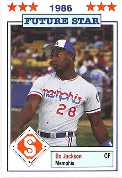Jackson was selected with the first overall pick of the 1986 NFL draft by the Tampa Bay Buccaneers.[37] He refused to play for them after a visit to team facilities using a private jet caused him to be ineligible to finish out his final college baseball season. The Buccaneers said the use of the jet was NCAA-approved, which was not the case. Jackson believes that the failure to obtain NCAA approval was deliberate and was intended by the Buccaneers to get him to play football instead of baseball. He vowed not to sign with Tampa Bay should they draft him, which they did anyway. He kept his vow and opted to play baseball for the Kansas City Royals, the defending World Series champions, who drafted him in the fourth round (105th overall), in the 1986 Major League Baseball draft.[38] Shortly after the draft, Jackson signed a three-year contract with the Royals worth just over $1 million. He spent 53 games[39] with the Memphis Chicks,[40] the Royals' Class AA minor league affiliate, and was called up to the majors in September 1986. Jackson made his major league debut on September 2 against the Chicago White Sox, and finished the game 1-for-3.[41] He made the Royals' roster in 1987 as a left fielder, and batted .235 with 22 home runs, 53 RBI and 10 stolen bases in 116 games;[42] his 22 home runs set a Royals rookie record.[43]