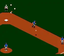 One or two players can select exhibition mode or playoff mode. CPU vs CPU or CPU vs CPU quick mode can speed a tournament, to see the stats of that particular match and quickly end tournaments. The game uses city names but not the team names because of lack of proper licensing with Major League Baseball.[1] The players are purely fictional and cannot be edited. Some of the player names are parodies, such as Baltimore's "Kenrip" resembling "Cal Ripken".
