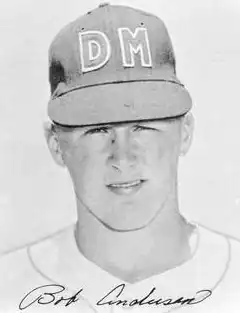 ![]() Anderson with the Des Moines Bruins, circa 1955 | |