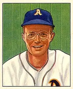 Robert Bernard Dillinger (September 17, 1918 – November 7, 2009) was an American professional baseball third baseman who appeared in 753 games in the major leagues (MLB) from 1946 through 1951 for the St. Louis Browns, Philadelphia Athletics, Pittsburgh Pirates and Chicago White Sox. Dillinger's six years in the major leagues showcased his batting ability (he led the American League in hits in 1948 with 207 and batted over .300 four times) and his speed (he was the Junior Circuit's stolen base champion for three consecutive years, 1947 through 1949, with 82 total thefts), but poor defense and a perceived lackadaisical attitude[1] resulted in a premature end to his big-league tenure. He threw and batted right-handed, stood 5 feet 11 inches (1.80 m) tall and weighed 170 pounds (77 kg).