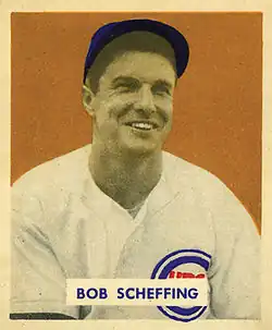 Robert Boden Scheffing (August 11, 1913 – October 26, 1985) was an American professional baseball player, coach, manager and front-office executive. Nicknamed "Grumpy", the native of Overland, Missouri, is most often identified with the Chicago Cubs, for whom he played as a catcher (1941–42, 1946–50), coached (1954–55), and managed (1957–59). Scheffing threw and batted right-handed; he was listed as 6 feet 2 inches (1.88 m) tall and 180 pounds (82 kg).
