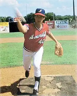 Tewksbury was drafted by the NY Yankees out of Saint Leo University in the 19th round of the 1981 Major League Baseball draft. He earned a spot in the Yankees' rotation in 1986 after pitching 20 straight scoreless innings in spring training.[1] In his major league debut on April 11, 1986, he allowed two runs in 7+1⁄3 innings against the Milwaukee Brewers, was credited with the win in New York's 3–2 victory, and received a standing ovation from the fans at Yankee Stadium.[7] After the game, team owner George Steinbrenner sent him a bottle of champagne, which the pitcher never opened and kept as a souvenir.[1] He played for the Yankees for two years, and was then sent to the Chicago Cubs. As a free agent in 1988, he signed with the St. Louis Cardinals, where he would stay until 1994. Again a free agent, he went to the Texas Rangers for a year. In 1996, he signed with the San Diego Padres for one more year. In December 1996, he signed with the Minnesota Twins and played for two years with the team,[8] but shoulder problems effectively ended his baseball career after that.