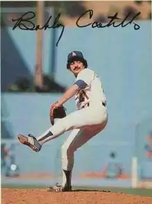 Robert Ernie "Babo"[1] Castillo Jr. (April 18, 1955 – June 30, 2014) was an American professional baseball pitcher. He played for the Los Angeles Dodgers and Minnesota Twins of Major League Baseball (MLB) between 1977 and 1985. He was in the bullpen for the Dodgers in the 1981 World Series, pitching one inning against the New York Yankees. He also pitched one season in Japan for the Chunichi Dragons in 1987. Castillo is credited with teaching his former Dodgers teammate, Fernando Valenzuela, how to throw a screwball.[2][3]