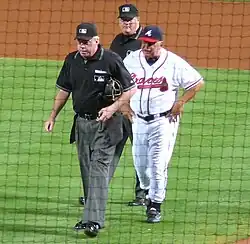 - ^ Stiglich, Joe (October 8, 2010). "Atlanta Braves manager Bobby Cox ejected one more time". The Mercury News. Retrieved June 22, 2017.