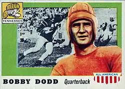 Dodd twice earned All-Southern honors, in his junior and senior years.[15][16] "It is doubtful if any quarterback in the south can match Dodd on all-around ability. He is a fine passer, a punter of ability, and the greatest field general to ever grace southern turf since the days of the one and only Pooley Hubert", according to one newspaper article of this era.[17] In 1959, Dodd was named to the University of Tennessee's Hall of Fame and to the College Football Hall of Fame as a player.[4][18][19] He was elected in the same year as teammate Herman Hickman. He was nominated though not selected for an Associated Press All-Time Southeast 1920–1969 era team.[20]
