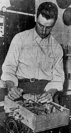 ![]() Sturgeon, circa 1942, during his off-season job repairing radios in Long Beach, California. | |