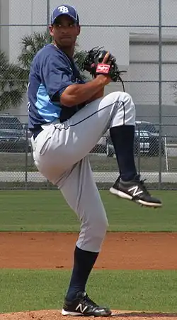 ![]() Lara pitching for the Tampa Bay Rays spring training camp in 2012 | |