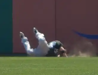 ![]() Carroll making a diving catch with the Florida Marlins in 2010 | |||||||||||||||