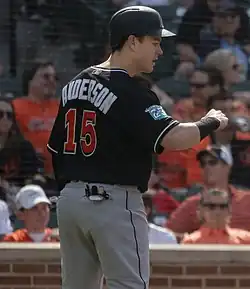 Brian Wade Anderson (born May 19, 1993) is an American professional baseball third baseman and right fielder who is a free agent. He has previously played in Major League Baseball (MLB) for the Miami Marlins, Milwaukee Brewers, and Atlanta Braves. He made his MLB debut in 2017 with the Marlins. Anderson played college baseball for the Arkansas Razorbacks.