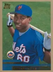 Cole was then drafted by the New York Mets in the 18th round of the 1998 Major League Baseball Draft and chose to sign.[4] He made his professional debut that season for the Kingsport Mets.[3] After 56 games with Kingsport, he was promoted to the Pittsfield Mets, where he played in two games. Overall, he hit .298/.315/.487 with five home runs, 36 RBI and 16 stolen bases. Cole played the 1999 season with the Capital City Bombers. In 125 games, he hit .316/.362/.522 with 18 home runs, 71 RBI and 50 stolen bases.[3] Prior to the 2000 season, Baseball America ranked him as the Mets fourth best prospect.[2] He started the season with the St. Lucie Mets. After hitting .312/.356/.528 with 15 home runs and 54 stolen bases in 91 games, he was promoted to the Double-A Binghamton Mets.[2] He struggled early on, hitting only .136 in his first 59 bats, but rebounded to hit .350 over his next 117 at-bats.[3] Overall, he hit .301/.347/.494 with 19 home runs, 86 RBI and 69 stolen bases. For his play, he was named the Mets Minor League Player of the Year and was honored in a pregame ceremony at Shea Stadium.[3] After the season, he played for the Scottsdale Scorpions in the Arizona Fall League.[3][5]