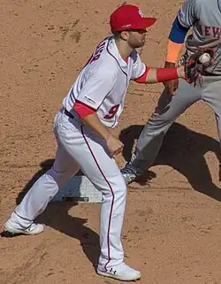 In 2019, he batted .238/.340/.430 with 20 home runs and 50 RBIs.[23] Defensively, he had a -5 Defensive Runs Saved (DRS) rating, the lowest in the National League among second basemen.[24] The Nationals finished the season with a 93–69 record, clinching a wild card spot. They went on to win the World Series over the Astros, their first championship in franchise history.[25]