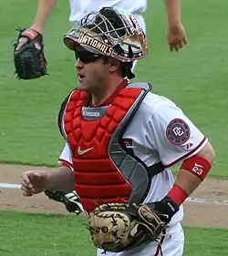 In 2005, the Expos franchise relocated to Washington, D.C. and became the Washington Nationals. Schneider was the first catcher in Washington Nationals history. That same year, Schneider threw out an MLB-leading 38 percent of would-be base-stealers. Between 2003 and 2005, Schneider threw out 43.5 percent of base-stealers, the best ratio in baseball over that period.[3]
