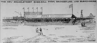 The first game at Broad Street Park was played on April 3, 1897, when the Richmond Bluebirds beat Richmond College by a score of 11 to 3.[4]