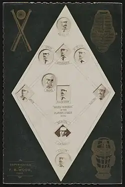 ![]() Logo A group portrait with the caption: "WARDS WONDERS" OF THE PLAYERS LEAGUE 1890 | |