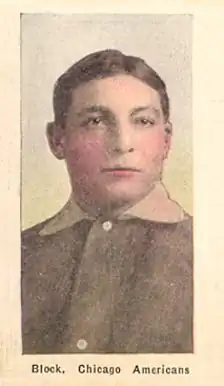 James "Jimmy" John Block (born James John Blochowicz on March 13, 1885 – August 6, 1937) was an American catcher over parts of five seasons in Major League Baseball. He was known during his playing days as Jimmy Block. He reported to the Washington Senators the same day that Walter Johnson made his major league debut. Jimmy Block caught "Big" Ed Walsh's no-hitter on August 27, 1911.[1] He married Maria Czaplewski of Milwaukee with the marriage license filing date of October 6, 1910.[2] After his baseball career ended, he became a salesman for the Miller Brewing Company.[1]