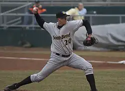 ![]() Augenstein pitching for the South Bend Silver Hawks in 2008 | |