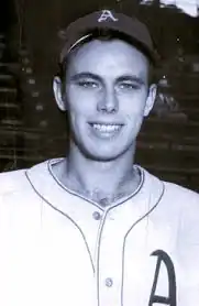 Harris' pro career began at the age of 17 in the low minor leagues. He appeared in 51 games in 1943 and 1944 before entering the United States Navy for World War II service. Acquired by the Athletics in 1947, he made his major league debut the following season, when, on April 29, 1948, he retired the Boston Red Sox in order during the eighth inning of the Red Sox' 11–5 victory at Shibe Park.[1] Harris went on to lead the first-division Athletics in games pitched with 45—all of them as a reliever—and tied for the team lead in saves (then an unofficial statistic), with five. He posted a 5–2 won–lost record and a 4.13 earned run average in 932⁄3 innings pitched; all would be career bests. In 1949, Harris' effectiveness diminished and his production fell off: in 37 games, he split two decisions, had three saves, and saw his ERA rise to 5.44.