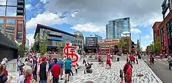 Ballpark Village is a multi-phase residential and entertainment complex located on the site of the former Busch Memorial Stadium across the street from the new ballpark. Despite several years of delays, groundbreaking occurred in February 2013 and the first phase was completed in time for Opening Day 2014.