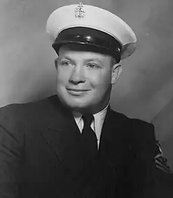He then spent three years in the United States Navy during World War II.[3] Initially disallowed from joining the military due to poor eyesight, he was allowed entry after agreeing to play football for the Great Lakes Navy Bluejackets, one of the organized military service football teams.[2][11]