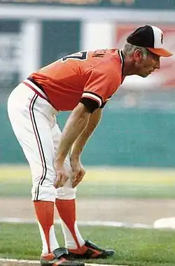 Doug DeCinces, who played under him through the 1981 season, recalled, "He was the dictator of that regimen, instructing us on everything down to how to wear our socks. He said, `Take pride in your appearance and you'll take pride in your game.'"[7] The Orioles experienced great success during this time, reaching the World Series in 1979, which they lost to the Pittsburgh Pirates in seven games.[17] Four years later, Ripken earned a World Series ring as the Orioles won the 1983 World Series in five games over the Philadelphia Phillies.[18]