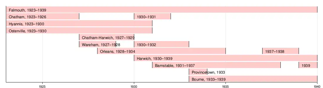 | * In 1933, Provincetown withdrew and was replaced by Bourne mid-season. | |