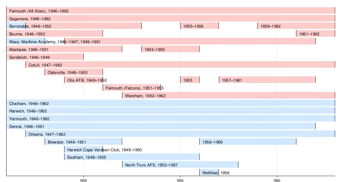 Barnstable Townies / Barons / Red Sox | 1946*–1952† 1955–1956 1959–1962 |