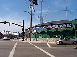 Cardines Field is a baseball stadium located at 20 America’s Cup Avenue in Newport, Rhode Island. It is believed to be one of the oldest ballparks in the United States and has been called "a small urban gem of a ballpark".[2] The field serves as a buffer between the residential and commercial sections of an older part of Newport. The oddly shaped outfield fence and dimensions are created by the close proximity of residential housing, while the spectator side of the park is contained by America's Cup Avenue and West Marlborough Street.[3] Originally called Basin Field, references to the field can be found as early as 1893. At that time, the property was used by local railroads as a drainage and supply basin for steam engines. Complaints from neighbors about the stagnant water and mosquitoes prompted the drainage of the basin area, permitting baseball to be played. A local historical debate continues as to whether baseball was played prior to 1900, making Cardines one of the oldest existing ballparks in the country, or if play didn't begin until 1908, the earliest documented proof of stadium construction.