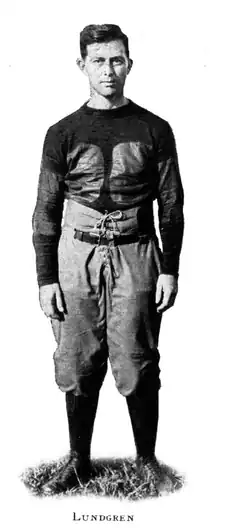 Lundgren enrolled at the University of Illinois Urbana–Champaign in 1898, studied civil engineering, and graduated in 1902.[2][5] As a senior, he published a paper titled, "Comparative strength of gravel and broken-stone concretes".[6] While at Illinois, he played at the halfback and fullback positions for the Illini football team for three years. He was also a pitcher for the Illini baseball team from 1899 to 1902 and was the team captain in 1902.[3][7]