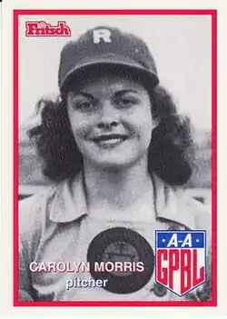 Carolyn E. Morris (September 28, 1925 – February 20, 1996) was a female pitcher who played from 1944 through 1946 in the All-American Girls Professional Baseball League (AAGPBL). Listed at 5 ft 7 in (1.70 m), 157 lb., Morris batted and threw right-handed. She was nicknamed India by her teammates and close friends.[1]