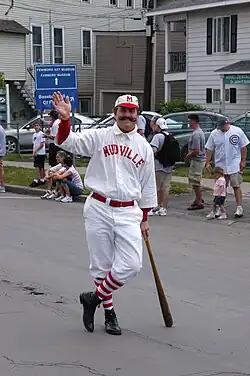 However, residents of Stockton, California—which was known for a time as Mudville prior to incorporation in 1850—also lay claim to being the inspiration for the poem. In 1887, Thayer covered baseball for The Daily Examiner—owned by his Harvard classmate William Randolph Hearst—and is said to have covered the local California League team, the Stockton Ports.[20] For the 1902 season, after the poem became popular, Stockton's team was renamed the Mudville Nine.[21] The team reverted to the Mudville Nine moniker for the 2000 and 2001 seasons. The Visalia Rawhide, another California League team, currently keeps Mudville alive playing in Mudville jerseys on June 3 each year.